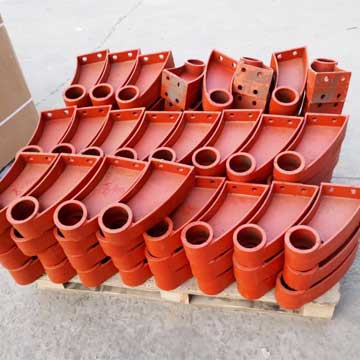 護欄支架工藝:砂模成型——砂模硬化——電爐澆鑄——半成品成型——噴砂處理——噴漆——成品。